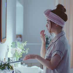 今回のWEBムービーは、様々な悩みを抱える女性たちを「朝のメイクで応援すること」がテーマ。朝起きてからメイクをすることで、少し落ち込んだ様子から、前向きな気持ちに変わって出かけていく橋本の様子が描かれている。また、まるで自分を応援するようにsumikaの「ファンファーレ」を口ずさむ姿も見ることができる。
