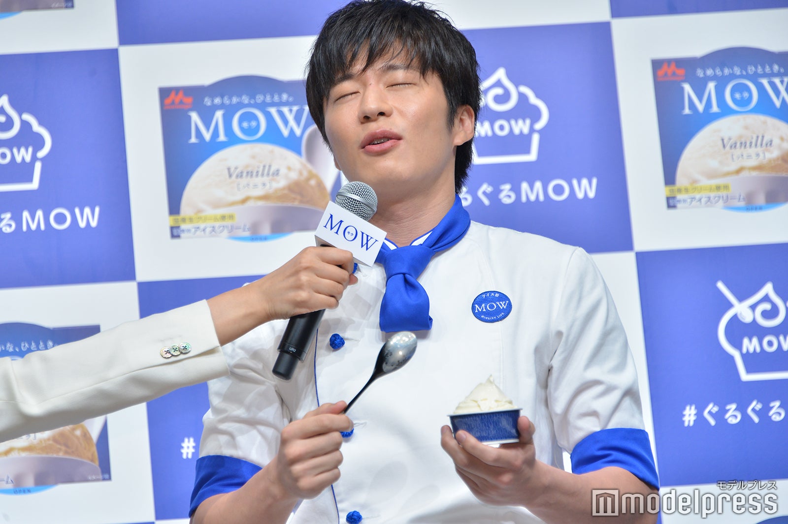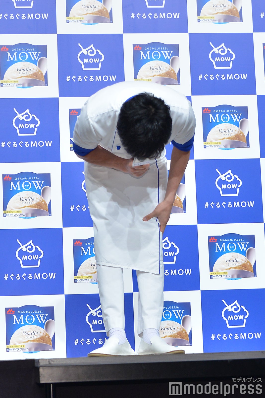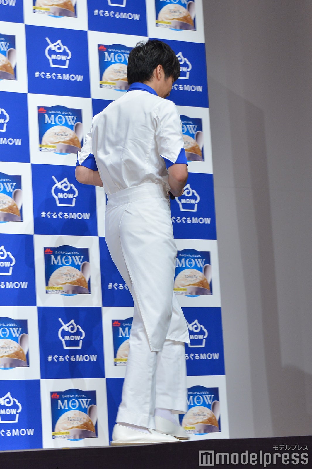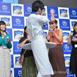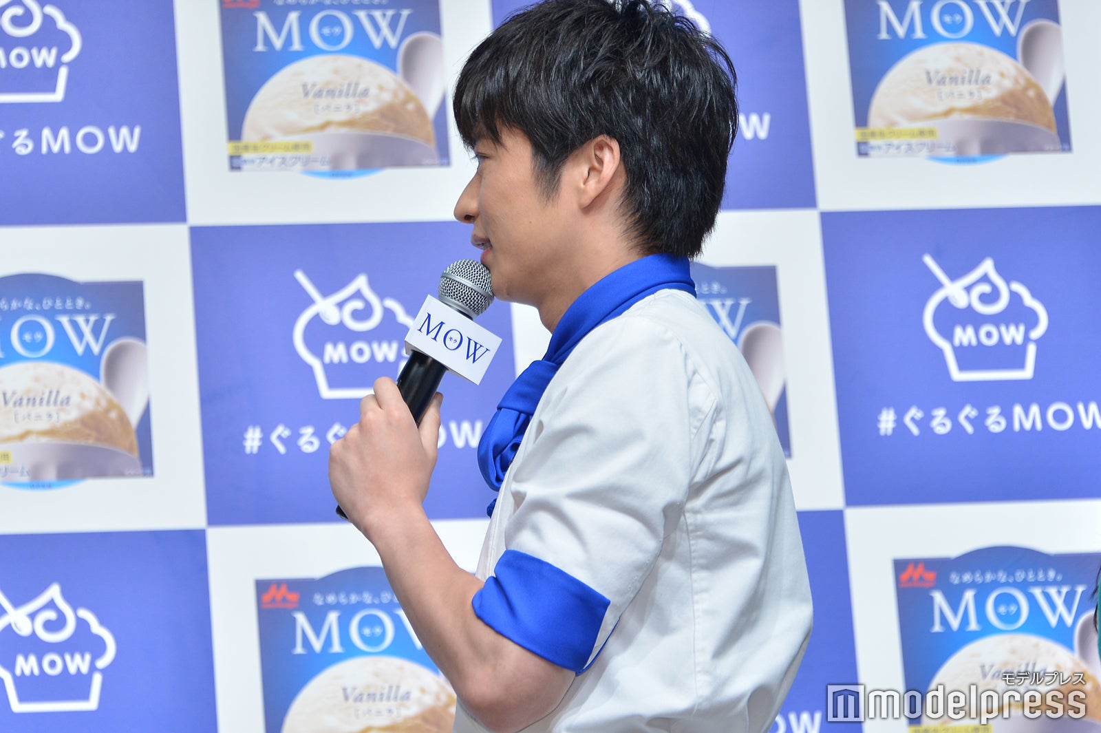 アイスのCMキャラクターを務める田中はこの日、白と青を基調としたアイス屋店主の制服姿で登場。会場には事前に行ったキャンペーンに当選した一般客の70名が来場。そこからサプライズで10名に、田中からアイスのオリジナルの食べ方を直接レッスンすることに。ファンから「濃厚でとても美味しい」「滑らかで美味しい」「舌触りが爽やか」などの感想を聞いた田中は「濃厚で美味しいいただきました!」「滑らかで美味しいいただきました!」と随時反応し、「なんだみんな俺よりコメントが上手いじゃないか…」と感嘆。MCから、次は田中の食レポの番だとふられると、だいたいの感想を聞いてしまったため「失敗した!」と苦い表情を見せながらも、「本来のピュアな美味しさであり、ぐるぐると一手間加えることによりソフトクリームのような滑らかな食感になりますね!絶品です」と店主になりきりドヤ顔でレポート。会場からは笑いと拍手が起こった。