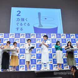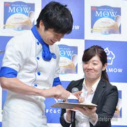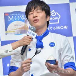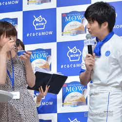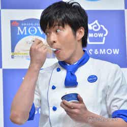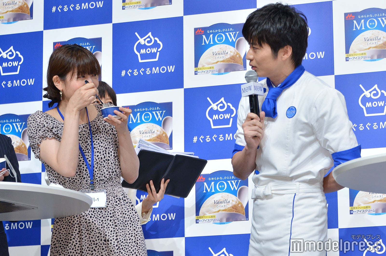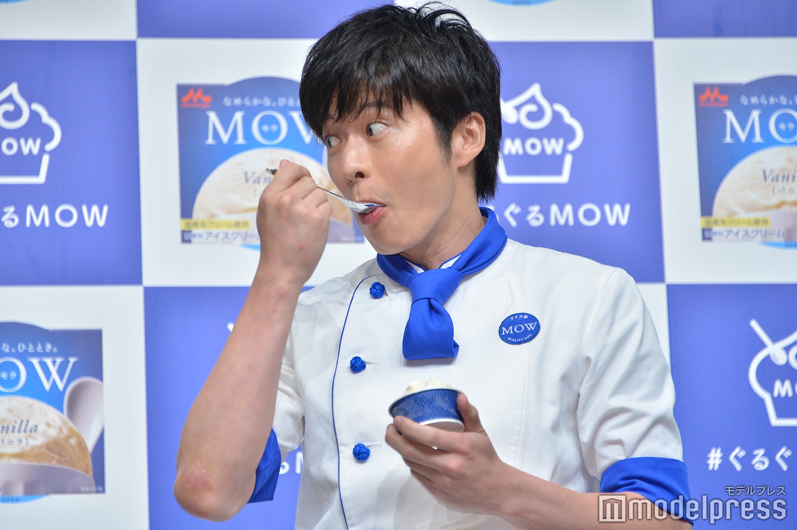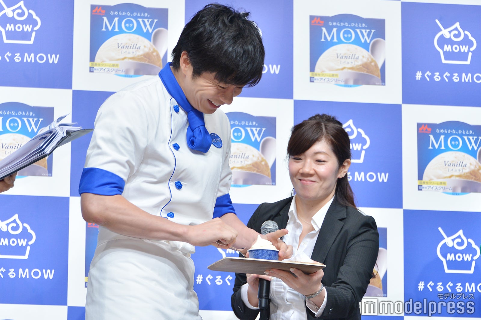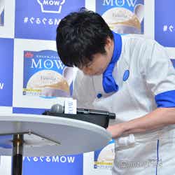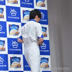 アイスのCMキャラクターを務める田中はこの日、白と青を基調としたアイス屋店主の制服姿で登場。会場には事前に行ったキャンペーンに当選した一般客の70名が来場。そこからサプライズで10名に、田中からアイスのオリジナルの食べ方を直接レッスンすることに。ファンから「濃厚でとても美味しい」「滑らかで美味しい」「舌触りが爽やか」などの感想を聞いた田中は「濃厚で美味しいいただきました!」「滑らかで美味しいいただきました!」と随時反応し、「なんだみんな俺よりコメントが上手いじゃないか…」と感嘆。MCから、次は田中の食レポの番だとふられると、だいたいの感想を聞いてしまったため「失敗した!」と苦い表情を見せながらも、「本来のピュアな美味しさであり、ぐるぐると一手間加えることによりソフトクリームのような滑らかな食感になりますね!絶品です」と店主になりきりドヤ顔でレポート。会場からは笑いと拍手が起こった。