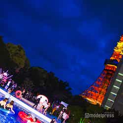 イベントでは、ナイトプールのプール開き宣言を実施。「あの水着可愛い」とテンションを上げるゆうこすと菜波の合図で100人の水着美女が一気に入水し、一足先に夏の幕開けを告げて盛り上がった。