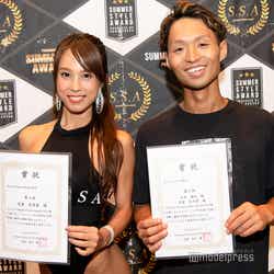 結果は、「カップルモデル部門」で1位、「ビューティーフィットネスモデル」部門で1位の2冠達成。表彰式では、喜びの涙を堪えながら金子賢から賞状を受け取っていた。以下、授賞式後のインタビュー。