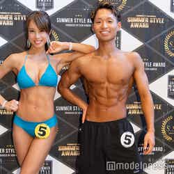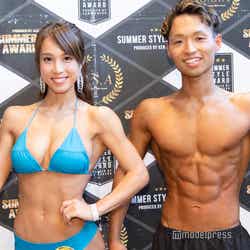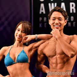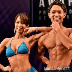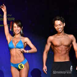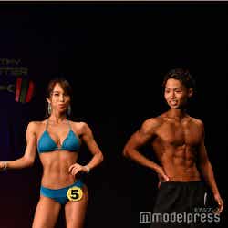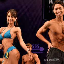 本番前、「とにかく緊張します…他の出場者の方が見れないです」と顔をこわばらせていた犬童。しかし、衣装に着替え、ウォームアップを始める頃には落ち着いた表情になっていた。最初は、新設された「カップルモデル」部門に、自身を指導してくれた玉手雅也トレーナーと参加。ビキニからあらわになった肉体は、グラビアアイドルらしい丸みを帯びたボディとは打って変わり、筋肉で引き締まり、アスリート顔負けの造形美だった。