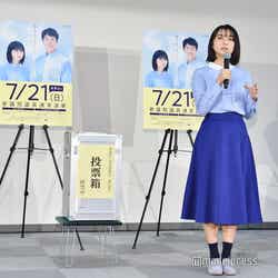 事前にマニュフェストを読んだりWEBサイトで調べて勉強した上で、同イベントの前に、期日前投票を行ったという上白石。「21日はもともとお仕事の予定があって投票に行けないということで、今回、期日前投票をさせていただきました」と明かし、「私も“投票所ってどんな感じなんだろう”とかわからないことも多かったんですけど、投票所入場券を持って、場所と時間を確認して、投票所に行ったら時間も短く、簡単に投票することができました」とニッコリ。加えて、「時間と場所さえ把握しておけばこんなにも簡単にできるものだと思っていなかったので、特に同年代の方は難しいイメージを持たれている方も多いと思うのですが、ぜひ気軽に足を運んでいただけたら嬉しいなと思います」と呼びかけ、「私も今回の期日前投票で自分のことだったり、家族のこと、いろんな想いを巡らせながら投票をしました。このポスターにもある通り、まさに考えるキッカケになると思うので、ぜひ若い方々も投票所に足を運んでいただけたらなと思っております」と訴えた。