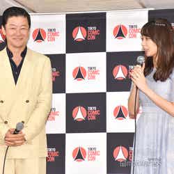 一方、浅野は「東京コミコン2019」のアンバサダーとして宇垣とともに同イベントをアピール。マーベル作品の映画『マイティ・ソー』シリーズにホーガン役を務めた経験を持っており「ヒーローを演じさせていただいたので、この機会を待っていた。本当に嬉しい!」と大喜びだった。また、浅野を横にした宇垣は、「この機会にと思って『マイティ・ソー』を見返している。なので隣にホーガンがいると思ってドキドキしますね!」と満面の笑み。その言葉に浅野は「あ~嬉しいですね。ホーガンです!」と感激していた。