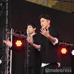 今作は、人を笑わせることが大好きで、笑わせるためなら命がけで何でもやる“学園の爆笑王”こと上妻圭右(間宮)と、高校生ながら元プロ芸人の辻本潤(渡辺)の成長と奮闘を描いた青春ドラマ。青春マンガの巨匠・森田まさのり氏の最新作で、劇団ひとりが連ドラ初演出を手がける。今回、漫才に初挑戦した間宮は「一番最初に練習した時に、台本を(渡辺と)2人で座って読んだら、ひとりさんに『いや違うなぁ…漫才の感じが出ないなぁ…』って言われて。『セリフを覚えてなくてもいいから台本を置いてザーッとした流れだけでいいから、適当に2人が言いたいことを言い合って漫才を楽しんでやってみてくれる?』ってまったくセリフが入ってない状態で」と劇団から言われたことを回顧。渡辺も「適当にやったら『それでいいから本番まで練習しないでくれ』って言われちゃいまして」と劇団とのやりとりを明かし、漫才を一度も合わせることなく本番に臨んだという。