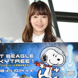 女優の飯豊まりえが18日、東京スカイツリーで行われた「FIRST BEAGLE INSKYTREE!−アストロノーツスヌーピーと宇宙を知ろう−」(同所にて10月14日まで開催)の取材会に出席した。