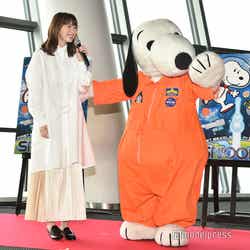 スヌーピーの着ぐるみが登場すると「宇宙服着てるー!NASAのワッペン付いてる。めちゃめちゃかわいいー!」と目尻を下げ、「実際にお会いするのは初めてなんです」と握手。イベント期間中に3日間だけスヌーピーと直接会える機会があることがお知らせされると、飯豊は「3日間だけなんですか?お忙しいですねぇ」とコメントして会場を沸かせた。