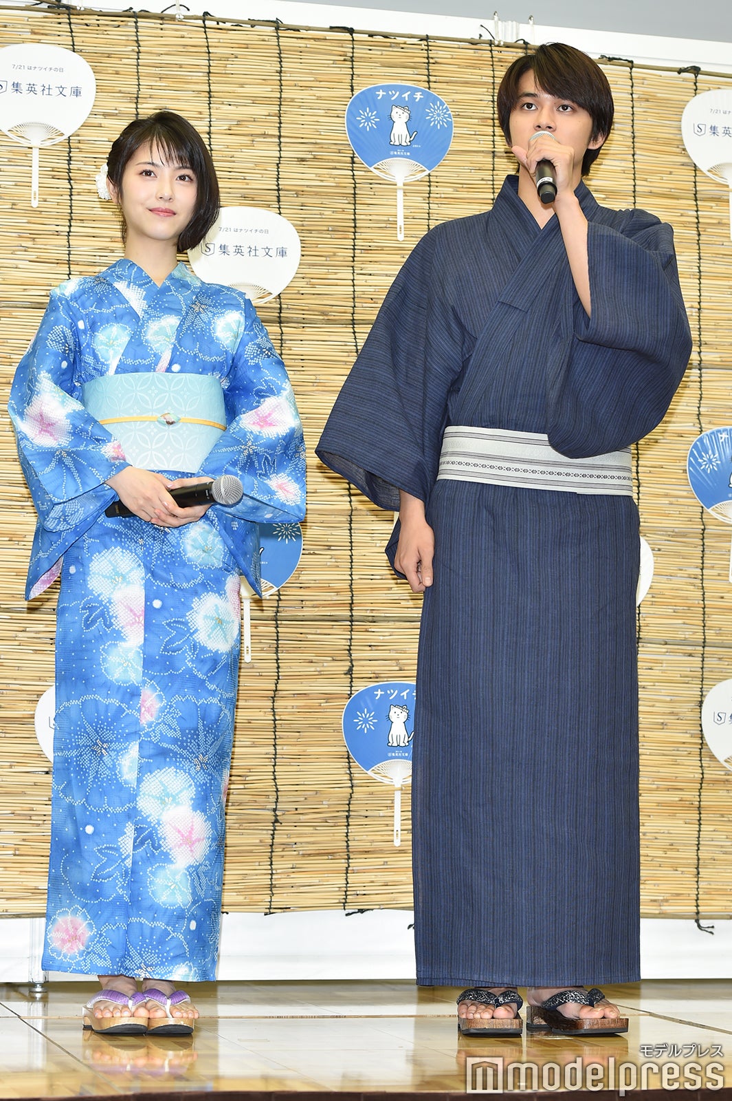 涼しげな浴衣姿で登場した2人。集英社文庫夏のフェア「ナツイチ」2019のキャンペーンイメージキャラクターに選ばれた感想を聞かれると、北村は「僕は本が好きで、仕事柄、本を読むことも多いですし、活字が好きだったので、自分の好きなものをPRさせていただけるということはすごく光栄でしたし、それを美波ちゃんと2人でやれることも嬉しく感じました」と喜びを語った。