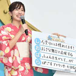 同イベントのアンバサダーを務める3人は、アンバサダー初仕事として“しおぱら”であいうえお作文で自己紹介をする企画が行われ、内定してからの2ヶ月間で、お菓子とアイスと油そばを食べまくって、体重が6kg太ったことを明かし、この夏にダイエットすることを宣言した杉原アナは「4kg戻すことができたので、ここからランニングで5kg減らしたいと思います」と意気込み、日本舞踊が特技という河出アナはガラパゴスアナウンサーを目指すといい、「ガラパゴス諸島のように、独特な独自のセンスで頑張りたいと思います」とニッコリ。“ら”の使い方がおかしいと指摘されると「直前まで考えたんですけど、どうしても“ら”から始まる言葉が思いつかず」と言い訳し、杉原アナから「ガラパゴスアナウンサーって大町が考えたんですよ」と暴露されると、MCを務めた先輩の菅谷アナは「どうして足の引っ張り合いをするの?仲悪いの?」と突っ込まれて笑いを誘った。