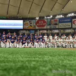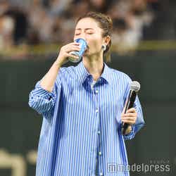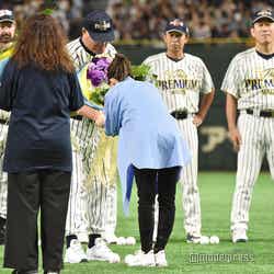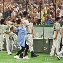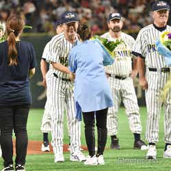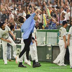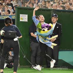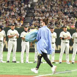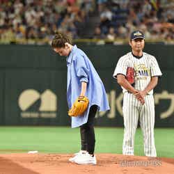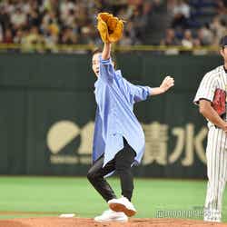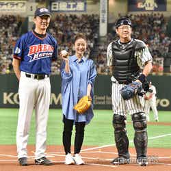 その後、グローブを着けて再登場した石原は、マウントをならし、キャッチャーを務めた古田敦也氏のグローブに狙いを定めたのち、大きく振りかぶって、ボールをリリースすると同時に勢いそのままに体ごと下を向く岡島秀樹氏のノールック投法を披露。ボールは高めながらノーバウンドで古田氏のキャッチャーミットに収まり、バッターを務めた高橋由伸氏のバッドは空を切った。石原は、岡島氏に駆け寄って抱擁したり、古田氏も加えた3人で記念撮影を行うなど、笑顔いっぱいでグラウンドを後にした。(modelpress編集部)