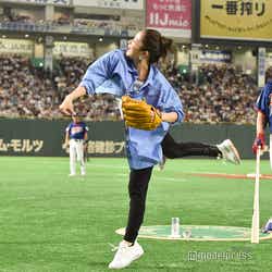 女優の石原さとみが29日、東京ドームで行われた「ドリームマッチ2019」のオープニングセレモニーに特別ゲストとして登場し、始球式を行った。