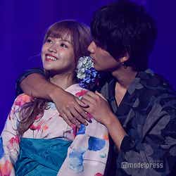 また、「妄想カップルの夏デートファッションショー」のステージでは、「Popteen」モデルたちがメンズモデルと共にプールや花火大会をイメージしたデートランウェイを披露。れいぽよ(土屋怜菜)&ほのばび(浪花ほのか)らがビキニ姿で美ボディを見せたほか、“なちょころりん”ことなちょす&那須の熱々な浴衣キスにも歓声があがった。