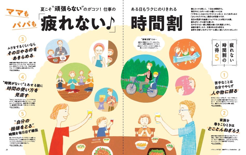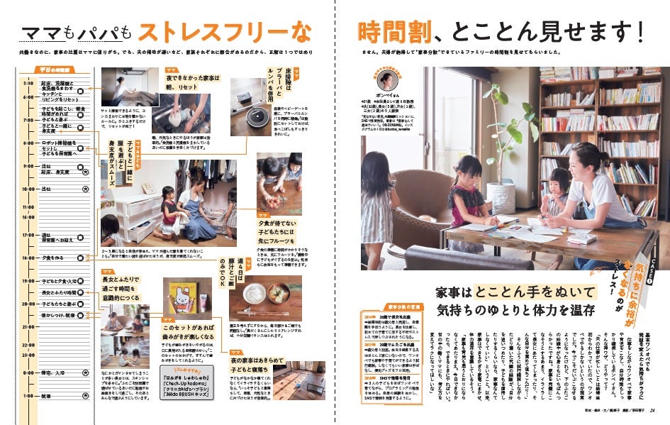 ほか、今号では大特集で「家事分散でパパもママも疲れない時間割」を展開。7家族に密着取材し、「夫婦共働きで、ストレスなく暮らすためのアイデア」をたっぷり紹介。ほか、「ママがいなくてもまわる収納」、「夫に洗濯をまかせる“家事パパ”進化論」、「パパも作れる子どもが喜ぶ15分献立」など、夫婦で家事をシェアしていくために役立つ情報を紹介している。(modelpress編集部)