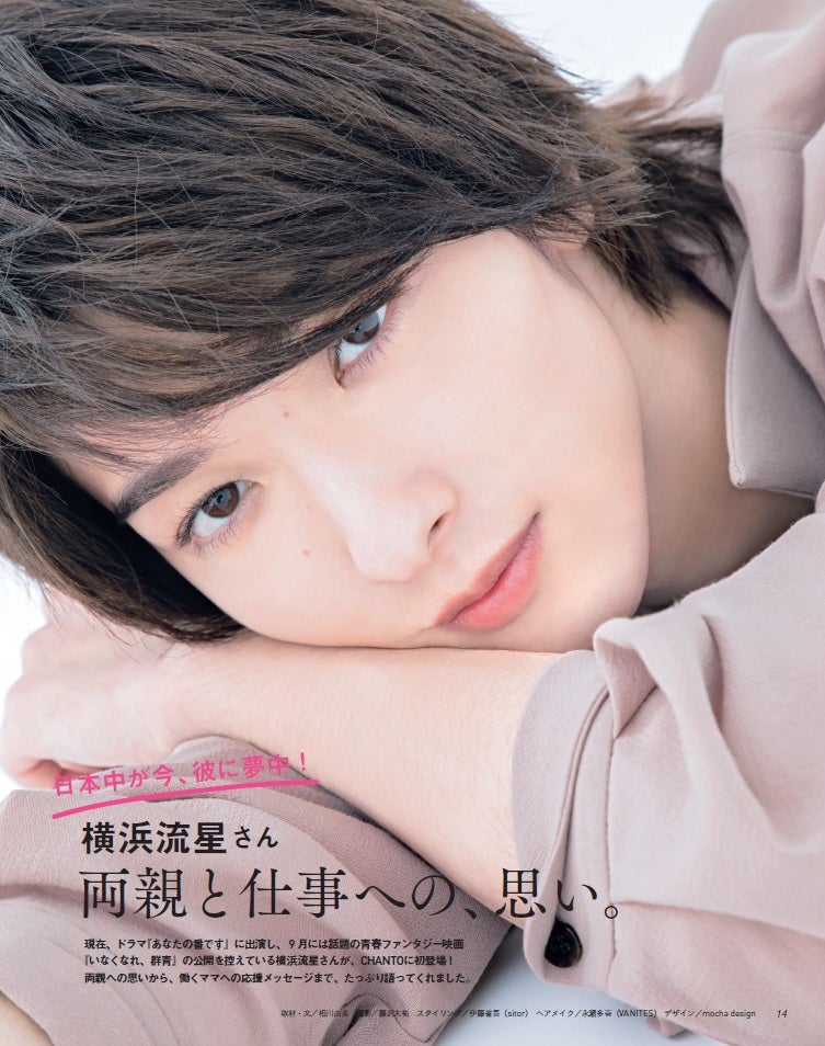 俳優の横浜流星が働くママ向けの生活実用「CHANTO」9月号の表紙に登場。同誌史上初となる男性単独表紙を飾った。