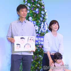 NHKの大河ドラマ『江~姫たちの戦国~』(2011年)で母親を演じたことがあったが、現代劇での母親役は初となる上野。「自分がまだ実体験として母になったことがないので、難しいというか、楽しみながら演じている。台本を読みながらこんな問題があったりするんだと朝顔を構築しています」といい、「いざ自分にそういう時が来たら、子どもをかわいがって(育児を)楽しめるといいなとか、大変な時ほどご飯を一緒に食べられたらいいなとか。まだ少し先の未来を、ドラマを通じて学ばせてもらっている」と“母親願望”をチラリとのぞかせた。この日、柚凪ちゃんは上野、時任、風間の似顔絵をママとじいじにプレゼント。上野は「目をパッチリ描いてくれたんだね、マスカラ、パッチリじゃん」と笑顔で受け取った。また、柚凪ちゃんは「ママの抱っこと、じいじの肩車」をリクエスト。上野が柚凪ちゃんを抱えると「いいですね、この重み」と目を細めていた。(modelpress編集部)