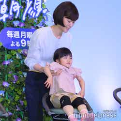 19日放送の第6話は、前回から5年経過している設定で、朝顔には4歳になる娘・つぐみが誕生している。つぐみ役の柚凪ちゃんは約70人が参加したオーディションから選ばれ、この日会見で「1番になって嬉しいです」と喜び。初めての会見で緊張していますか?との声には「緊張していないです」とあっけらかんと答え、会場の記者陣を和ませた。朝顔は母になり、時任が演じる平はおじいちゃんに。上野は、柚凪ちゃんが撮影に参加後の変化について「万木家は朝顔とお父さん2人で夕飯を食べていた。お父さんがカレーを作ると3日くらい食べられた。いま桑原とつぐみがいるのでカレーもあっという間になくなる。朝顔の部屋も低い家具になって川の字に布団をひいて寝ています」と明かした。