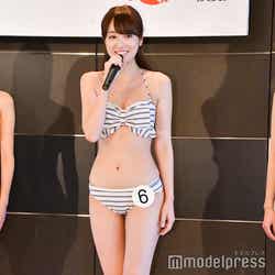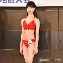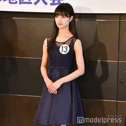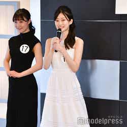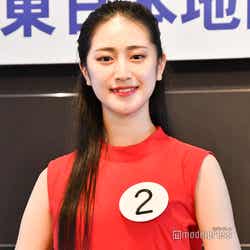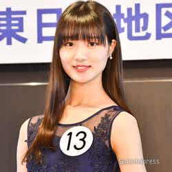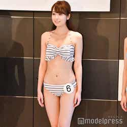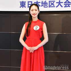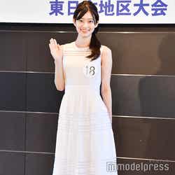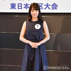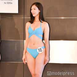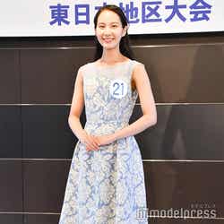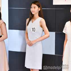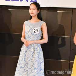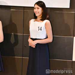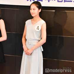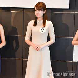 「大学では考古学を専攻しています。放課後は白衣を来て、ピンセットで土や砂を触ったりしています。そういう、地道さや泥臭さが私の“売り”かなと思っています」とアピールポイントを紹介。ミス慶応では多くの人の応援があったそうで、「昨年はみなさんのおかげでグランプリを取ることができました。その後、学生キャスターとしてニュースをお伝えさせて頂いたのですが、キャスター活動を通じて、もっと、もっと、応援して下さった方に恩返しがしたいと思うようになりました。今年は、ミス日本コンテストという新しい道を選び、またみなさんに恩返しができるような機会を追い求めています。去年とは違う私を見て頂きたいです」とにっこり。「“ミス日本”になりますか?」との質問には、恥ずかしそうにしながらも、小声で「もちろんです!」と答えていた。