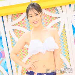 そして、レッドのクロスビキニを着こなしたのは、菅原樹里亜。胸のボリュームもアップしながら着痩せ効果で引き締まった美ボディを披露した。(modelpress編集部)
