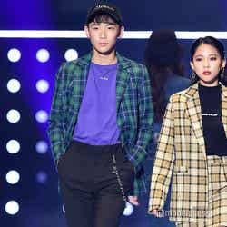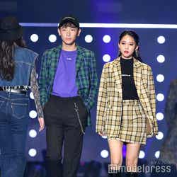 「LAGUA GEM」ステージにて、よしあきはグリーンのチェック柄のジャケットを羽織り、ミチはベージュのチェック柄のセットアップを着こなしたリンクコーデで2ショットランウェイを披露した2人。登場するやいなや会場には割れんばかりの歓声が上がり、ティーン層への人気の高さを示していた。