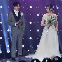 「マイナビウエディング」ステージでは新田真剣佑が吉川愛と、俳優でダンスロックバンド・DISH//のメンバーとしても活動する北村匠海は長編アニメーション映画『HELLO WORLD』で共演する浜辺美波と、伊藤健太郎は映画『惡の華』で共演する玉城ティナと、それぞれ2ショットランウェイを披露。