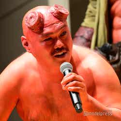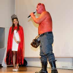 その後、会場後方よりヘルボーイに扮したクロちゃんが登場。クロちゃんは引き気味のゆきぽよに「さっき、『可愛い。チャーミング』って言ってたじゃん!」と詰め寄るも、ゆきぽよは「言ってないよ~。『胸毛も気持ち悪いし、背中の毛も気持ち悪い』って言ったの!」とキッパリ。