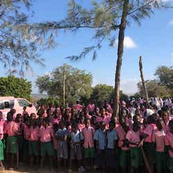 メンバー達が訪れてるモンバサに到着すると、地上波で放送されていた時代に“あいのり募金”で全国から多くの寄付金が募り、子供達の未来の為に途上国に建設された“あいのり学校”や“ラブワゴン”を発見した時の様子も公開。興奮冷めやらぬ様子で「久々のあいのり学校!そして…ラブワゴン発見!!久々すぎて感動 何も変わっていなくて涙出そう」「ラブワンと同じピンクの制服を着た子供達が迎えてくれました!すごい数の生徒達!久々の再会!みんなめちゃくちゃ元気 笑」と綴った。