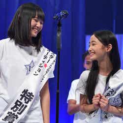 渡邉さんは小学3年生から2年間、少年野球チームで野球をやっていたが、昨年芸能界への夢を見つけ、退部。「すごい精神力の強さと、諦めない気持ちが強い子だなって思ってた。ぜひ芸能界でもフルスイングして下さい」と審査員からこれまでのレッスンでの姿勢も評価され、グランプリに。マイクの前に立つと、「本当に嬉しいです。私は9月4日が誕生日で今まで生きてきた中で最高のプレゼントを頂きました」と号泣しながら喜びをあらわにした。授賞式後の囲み取材では、今日会場に入ったとき、グランプリになると思っていたかと聞かれると、「思ってました」と胸を張る強さを見せたかと思うと、「名前を呼ばれたときは足と手が震えてペンギンより固くなってしまいました」とはにかむなど、等身大の素顔でも報道陣を和ませていた。