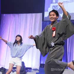1分間の自己PRでは、シンプルに胸を打つスピーチから、特技を披露する人まで様々。小高光宗くんは「カッコいいときの自分を見て下さい」とキレキレのダンスパフォーマンス、松澤和輝くんは飛び抜けた声量で観客を惹きつけた。171cmの長身を活かしモデルになりたいという青木怜奈さんは、留学経験を明かし、英語でもスピーチ。“変幻自在の表情筋”というキャッチコピーの伊藤日菜さんはミッキーマウスのモノマネと研究したモデルポージングを見せ、木下紗菜さんと山本麗美さんは特技の歌で綺麗な歌声を響かせた。