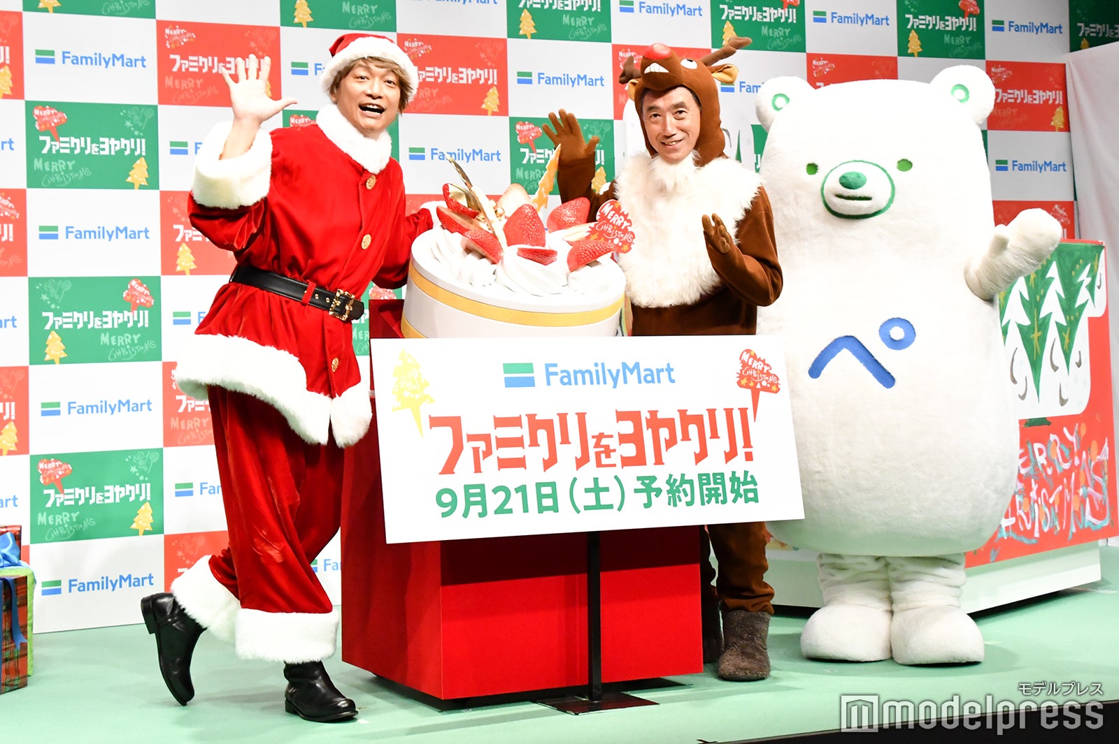 この日、香取はサンタクロース姿で登壇。自身が企画・開発・デザインし、ラッピングボックスのデザインも手掛けたクリスマスケーキをお披露目した。イベントでは、香取は、巨大ラッピングボックスの中から登場。勢いよく飛び出したものの、いったん空いたふたが下りてきて、香取が頭をぶつけてしまうアクシデントが発生。会場には温かい笑いが起こり、イベントは、さながら“香取劇場”の雰囲気で始まった。