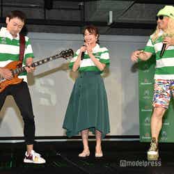 「爆音ラグビー」は、「にわかで、いいじゃないか。」をコンセプトに、「ラグビーワールドカップ2019 日本大会」の開幕戦(日本対ロシア)当日である20日に、銀座PLUSTOKYO(プラストーキョー)で開催。ぶつかり合う選手たちの肉体から生み出される大迫力の音を、フロアの床面に配した40台のスピーカーで拡幅する新しいラグビー観戦スタイルとなっている。イベントでは、3人が「爆音ラグビー」を体験する一幕もあり、私物のギターを使い、演奏した山本は「これは気持ちいいですね!爆音もそうですけど、自分で弾いておいて、自分の音じゃないみたいな感じでした。下からも来ますし、すごく気持ちよかったです」と目を丸くした。