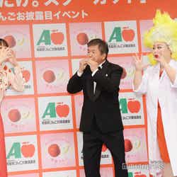 イベントには村上ショージ、元“パントのお姉さん”の上原りさも登場。村上は青森りんごを食べるようになってから「(ネタが)スベらなくなった」と特殊な効能を紹介。また、WEB動画のアニメキャラクターの声について、「僕にやらせてほしかった」と訴えると、過去には「ドラえもん」などのアニメの声優オーディションに参加したことも明かしていた。
