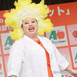 青森りんごの魅力を広めるため、渡辺をPRキャラクターに起用した新プロジェクト「青森りんごLab」が発足され、Lab長にふんした渡辺。毎年、「りんご姫」「りんごアフロヘア―」「りんごの女王様」「りんごアイドル」と、りんごをあしらったコスチュームを披露しているが、今年は白衣をまとい、黄色の星形のかぶりものをかぶって登場した。実は2kgもあるかぶりものは、りんごを輪切りにカットする“スターカット”をイメージしており、渡辺は「すごい首が痛いですね。動きも制限されるので、ちょっとしたストレスを抱えています」と苦笑い。しかし、「スターの重みを感じている」そうで、「ラメも全身に浴びて、全身スターになった気持ちです」と笑顔も見せていた。(modelpress編集部)
