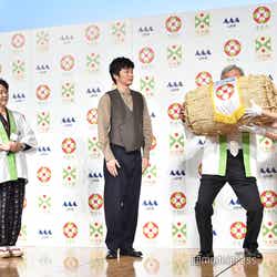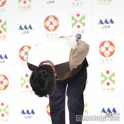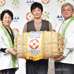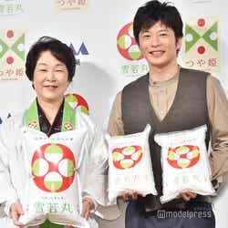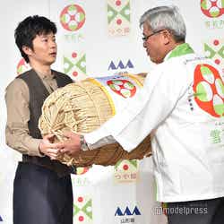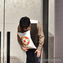 会見の終盤には、田中へ新米一俵が贈呈された。(modelpress編集部)