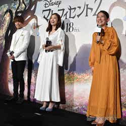前作に引き続きオーロラ姫の吹替えを担当する上戸は、「映像がスケールアップしているなというのもありましたし、オーロラ姫でいうと、1はニコニコしていてフワフワの柔らかいイメージだったんですけど、2では妖精を守らないといけないところから始まって、(フィリップ王子から)プロポーズされて結婚するわけですけど、女性としての強さが生まれていたなと思っています」と前作と比較して紹介。MCから「1のときより声がしっかりしていた」と声をかけられると、「わかってくださいました?全然意識してなかったんですけど、そう言っていただけてありがたいです」と話に乗っかり、MCから「じゃあ、ナチュラルに天才なんですね」と絶賛された。