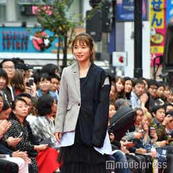 松岡茉優、渋谷ど真ん中で堂々ランウェイ “渋谷感”ファッションで登場