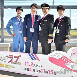 俳優の田中圭が主演、吉田鋼太郎がヒロインを務めるテレビ朝日系連続ドラマ『おっさんずラブ』の新シリーズ『おっさんずラブ-in the sky-』(11月2日放送開始/毎週土曜午後11時15分~0時5分)の記者会見が23日、茨城空港にて行われ、田中、吉田、千葉雄大、戸次重幸が出席した。