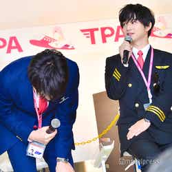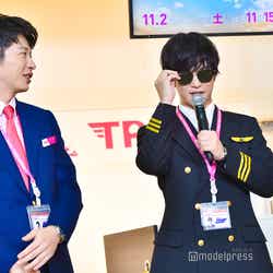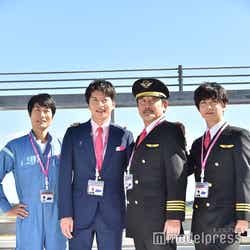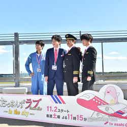この日は、茨城空港での撮影となったが、成田空港、関西空港など他の空港でも撮影を行っているといい、吉田は「朝が早いので過酷です」と吐露。「感動しました」とコックピットなどに実際に入ったことを興奮した様子で明かしたのに対し、男性CAを演じる田中は「まだ仕事しているシーンが少なくて、オープニングでちょろっと接客するシーンを撮った」と説明。「そのちょろっとだけでも声をかけるタイミングとかすごく難しくて全部の職業奥が深いなと思っている最中です」とCAへの眼差しが変わったことを明かした。今作より参加となる千葉は吉田と同じくサングラスをかけて会見に登場するボケを繰り出し、「滑ってますね?作品では滑らないように気をつけたいと思います(笑)」と挨拶。「素敵な先輩方とご一緒できて嬉しいですし、まだ始まって一ヶ月も経ってないんですけど、勝手にもう馴染んだなって思ってるんですけど、そうじゃないって雰囲気はないですか…?大丈夫ですか?」と心配すると、吉田は「ものすごく馴染んでます」とにっこり。喜んだ千葉は勢い余ってマイクをあごにぶつけてしまい、田中から「わざと?」と疑惑の目を向けられると「わざとじゃないです、緊張してます」と場を和ませた。