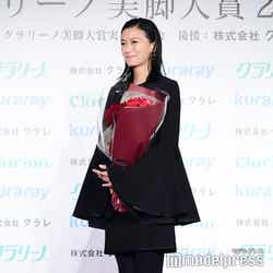 そして、オーバーフォーティー部門の木村は、ホワイトのドレスに、オータムブルー×ダークグレー(ヒール部分)のパンプスを着用して出席。「先ほどのお2人のような、モデルさんのようなスタイルでもないし、いたって普通の体型の私が、そして脚にずっとコンプレックスを持っていた私が、このような素敵な賞をいただけるなんて、すごく恐縮ですけれども、頑張ってきてよかったなって思いました」と頬を緩めた。さらに、普段の脚のケアに関しては「決して細い脚ではないので、むくみやすいので、お家でも、移動の車でも、現場でも、常にマッサージ器を持ち歩いて、あらゆるところでマッサージをして。メイク中も足に、コロコロ回る、足の裏をマッサージするのを置いて、コロコロコロコロやって。あらゆるときに足をマッサージしています」と紹介。「あと何週間か後には、アクションをやらなきゃいけないので、今鍛えてやっている最中ですね」とも話していた。
