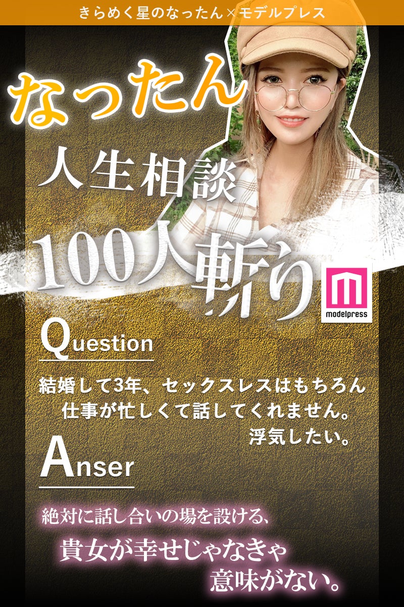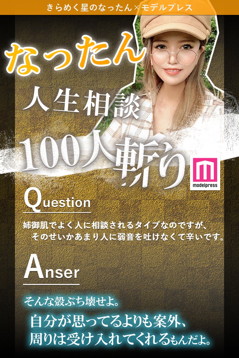 Instagramで写真に添える文章が「文才がすごい」「ギャグセン高い」と話題を集め、一般女性ながら約20万人のフォロワーを有する「きらめく星のなったん」(@nattan0504)による、モデルプレス連載「なったん人生相談 100人斬り!」。《人生相談》をテーマに、小さなものから大きなものまで、100人、いや100人以上のお悩みをバッサバッサと解決しちゃいます。<vol.7>