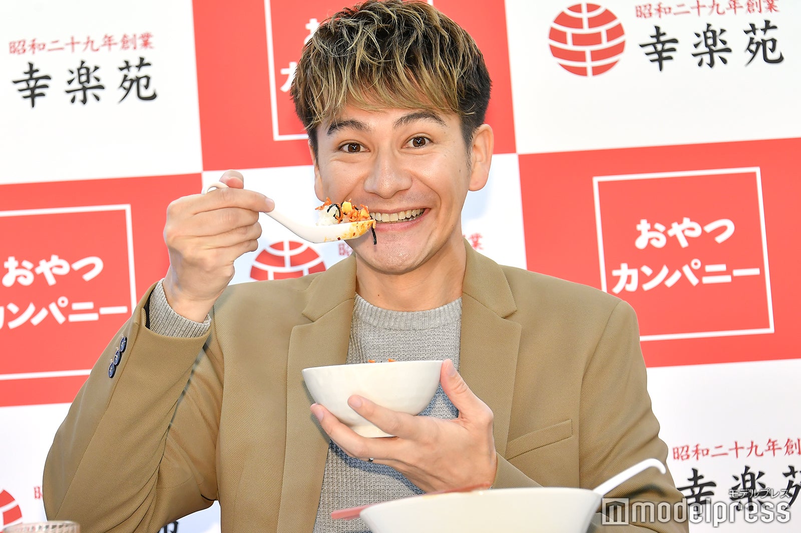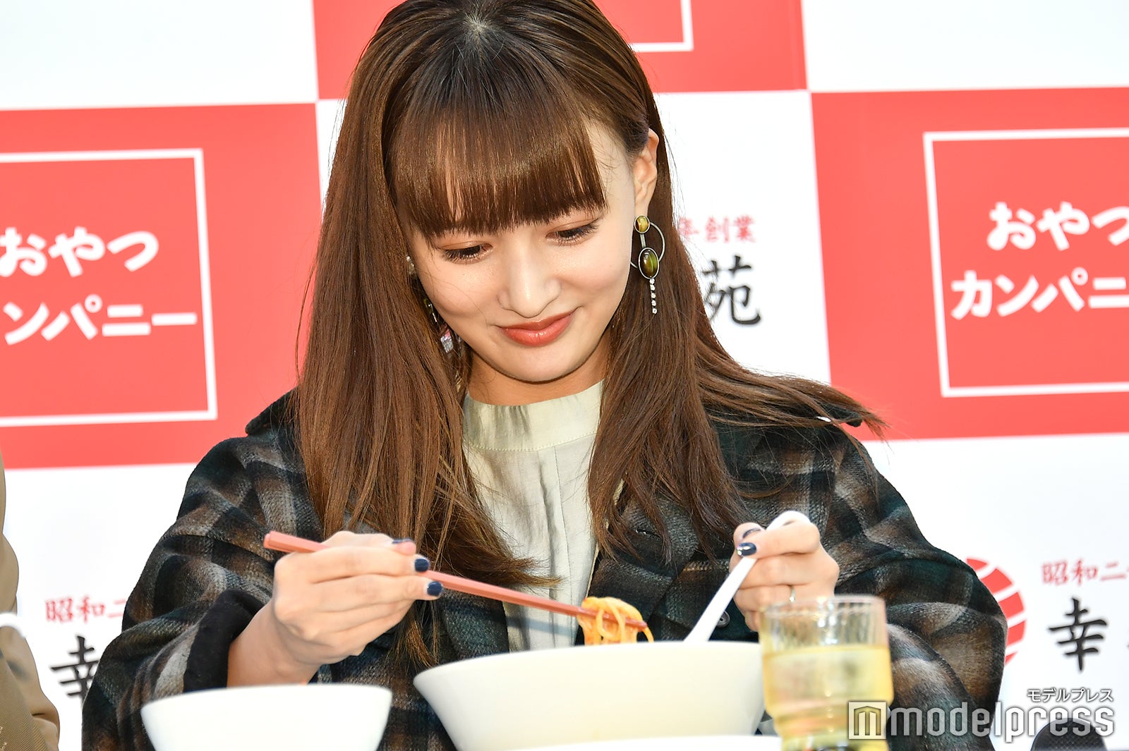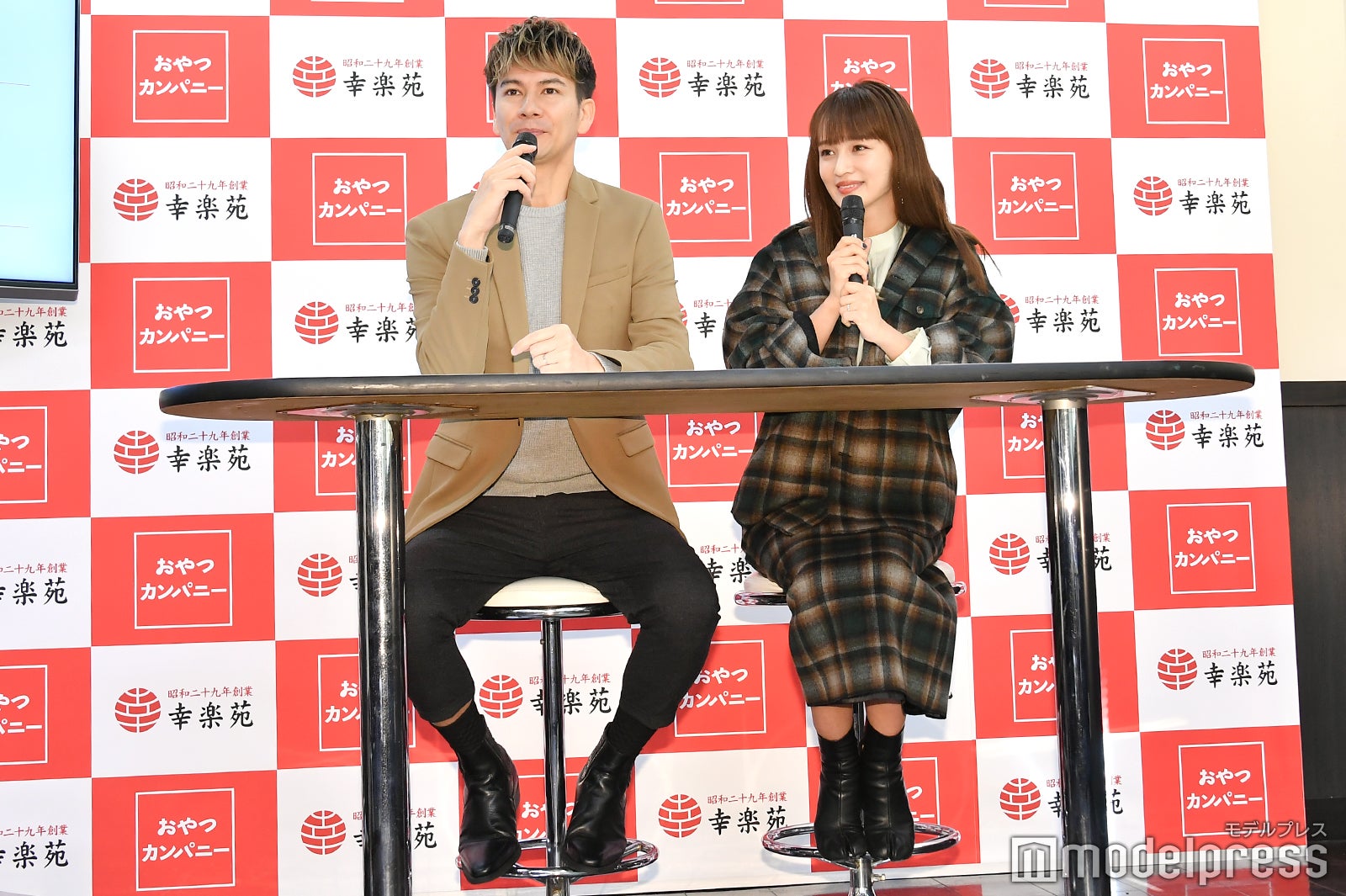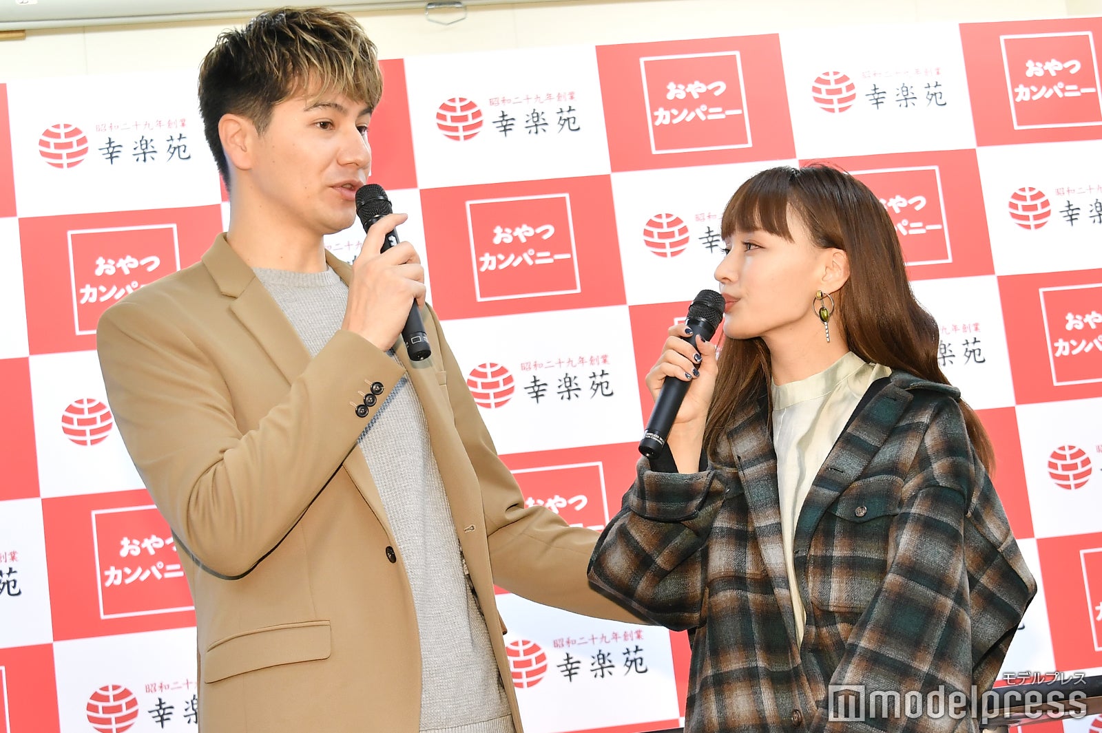また、イベント中JOYはわたなべの着席時に「大丈夫?麻衣ちゃん」と優しく気遣い。新商品の試食を終え、コメントを求められたわたなべにマイクを差し伸べるなど、終始仲睦まじい姿を見せた。さらに、フォトセッションでは、わたなべの代名詞ともいえる“ぷぅ顔”を2人揃って披露。満面の笑みを浮かべながら、幸せいっぱいのオーラを放っていた。