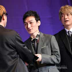 そして草なぎについて「子供の頃から、本当に兄のように慕ってきた草なぎさんのおかげ。これは一人だったら、とれなかったと思います。草なぎさんは俳優さんとしても本当に憧れの人で…」と会場に呼びかけるようにべた褒めすると、草なぎは「別に僕のことはいいよ(笑)嬉しいね」と照れ笑い。最後は「すごっく嬉しいよ、兄さん」(香取)、「弟よ」(草なぎ)と相思相愛ぶりを見せて会場を笑わせた。