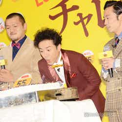 俳優のムロツヨシが6日、都内で行われたイベントにお笑いコンビ・カミナリの竹内まなぶ、石田たくみとともに登壇した。