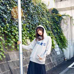 普段からパーカーはよく着るので、スタイリングもイメージしやすく、撮影も楽しかったです。これから寒くなるので、脚を出すかは考えます(笑)。Tシャツとパーカーはデザインが好きすぎてヘビロテさせて頂きます。ノベルティのキーホルダーは、キャラクターが謎すぎて大好きです!