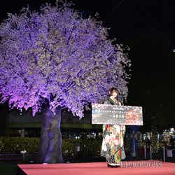 そして、点灯する時間になると「初めてなので(ボタンを)かすらないか心配です(笑)」とお茶目に笑い、観客とともにカウントダウンののち、しっかりとボタンを押して同所のイルミネーションを点灯させた玉城は「今日ここに着物を着てきた意味があったなという感じですね。すごくきれいな桜の木の下で、こんな素敵な着物を着られて、参加ができて、すごく嬉しく思います」と目を輝かせた。