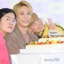 そしてイベントには、お笑いコンビ・ガンバレルーヤのまひるとよしこも参加し、11月26日に與が31歳の誕生日を迎えるため、特製のバースデーケーキをプレゼント。與が「今年初めていただいた」と喜ぶと、2人は與の顔に密着してフォトセッション。よしこは近距離で與を見つめ続けていた。