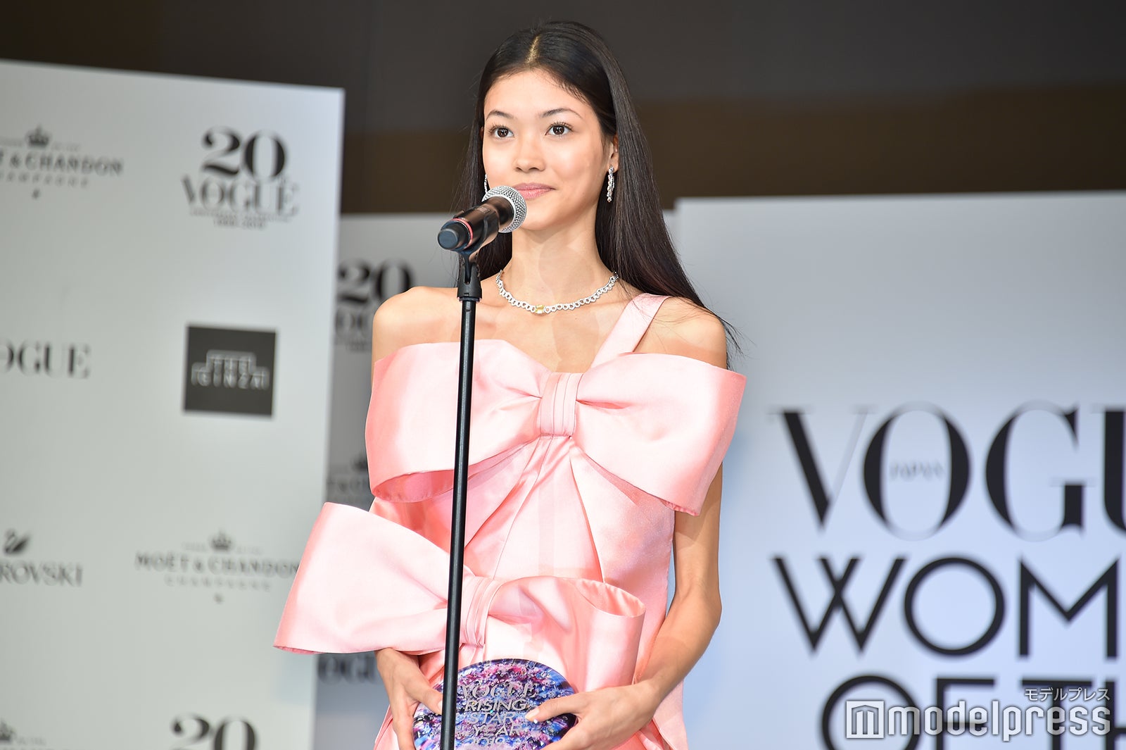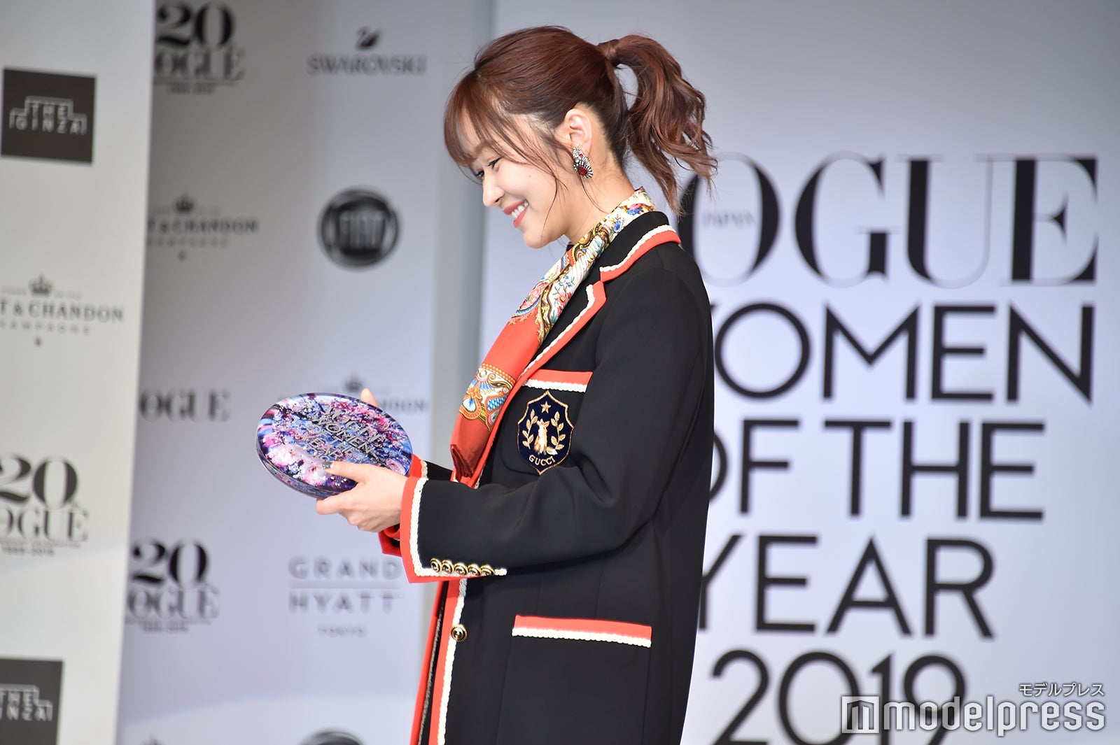 美脚をあらわにしたフォーマルなスタイルで登場した指原は「この賞をいただけると聞いて、急いでジムに4回行ったんですけど間に合わなくて、いつも通りの私でのご挨拶ですみません。改めまして指原莉乃です」と冒頭かららしさ全開の挨拶で会場を笑いに。受賞に対し「純粋にすごく嬉しいです!この気持ちをなんと伝えていいのかわからないんですけど、VOGUEさん20周年唯一の汚点にならないように(笑)これからも努力し自分らしく、自分に自信を持って仕事をしていきたいと思いました。ありがとうございます」と笑顔を見せた。MCの城田優は「ジムに4回行くだけであのスタイルになれるんだったら素晴らしいですよね」と感嘆。同じくMCの渡辺直美も「私も4回行ったらあぁなれるんでしょうか?ぜひ行ってみたいと思います」と尊敬の眼差しだった。