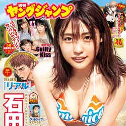 グラビア歴わずか5か月で待望の初ソロ表紙に抜てきされた石田は、誌面でふっくらとした美しいバストが際立つショットを披露。オレンジの水着姿や、くびれが印象的なプロポーションで魅了した。Guilty Kissが巻末グラビア登場