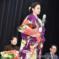 女優の関水渚が第43回・山路ふみ子映画賞「山路ふみ子新人女優賞」を受賞し、29日、都内にて行われた贈呈式に出席した。