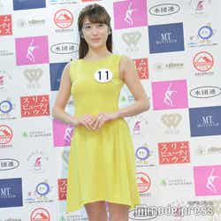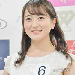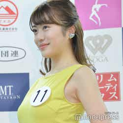 先日行われたミス立教コンテスト2019でグランプリを受賞した西村香也子さん(21)は、勝負する時に着用するという黄色のワンピース姿で登場。ミス日本コンテスト3度目の挑戦で、念願のファイナリストに選ばれ「勉強会にやっとの思いで参加できることになりました」と白い歯を見せた。勉強会を通じてさまざまな学びがあるといい「一流の方々からの“本物”の話に触れる大切さに気づきました」と述懐。また「大学のミスコンテストで伝えることの魅力を感じた」とアナウンサー志望であることを明かした。