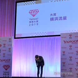 トロフィーを受け取った横浜は「すごく光栄ですし、トロフィーの重みが…。本当に幸せです。ありがとうございます」とトロフィーの重さで受賞の喜びを実感。